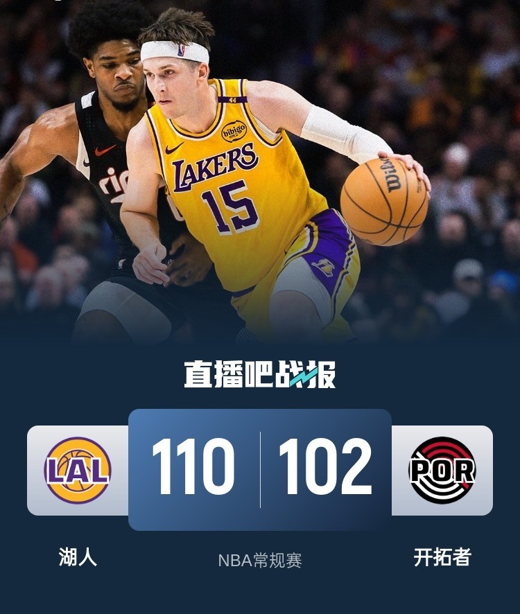 2月21日讯 NBA常规赛今日继续开打,湖人今日客赴波特兰挑战开拓者,本场比赛是湖人背靠背第二场比赛,东契奇本场伤病管理轮休缺席比赛;对阵方面湖人本赛季两次对阵开拓者均取得胜利。