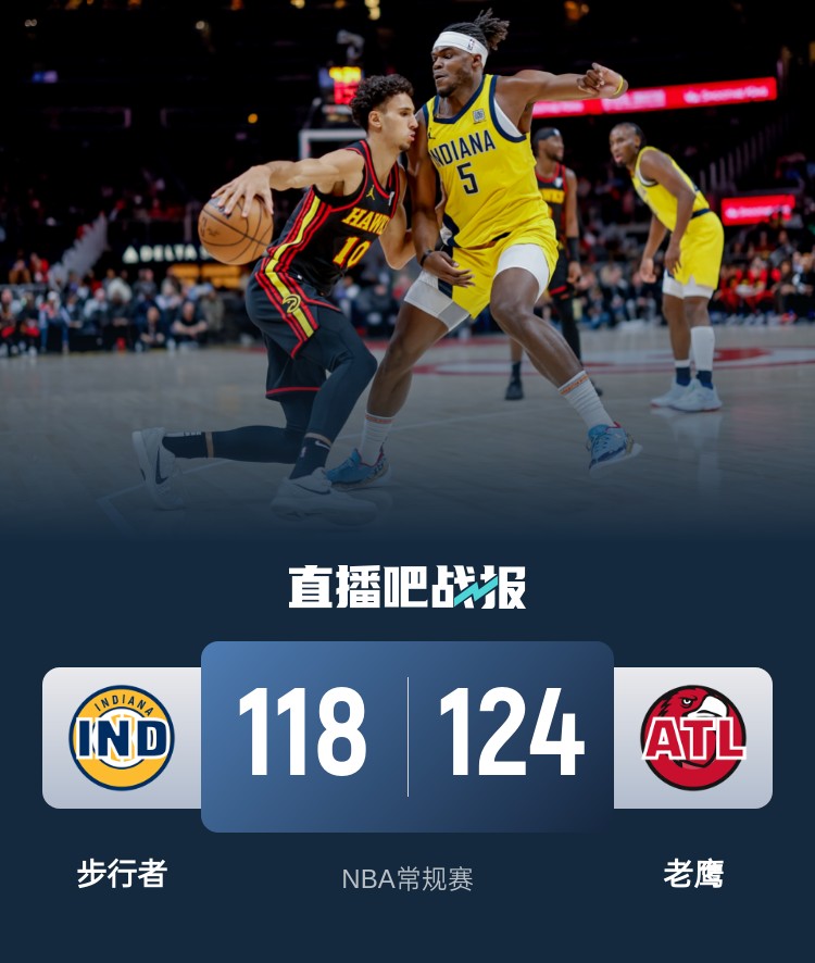 首节对决步行者虽然缺少后场大脑哈利伯顿,但进攻端仍然发挥出色并以一波11-2的攻势奠定首节10分领先;不过次节场面风云突变,老鹰次节开局不到4分钟的时间里轰出一波19-7的攻势直接扭转局势;奈何最后时刻老鹰自己也陷入哑火,步行者也抓住机会回敬一波14-3的攻势重新拉开7分领先进入下半场。休息归来双方来回拉锯几度互换领先,步行者又是末段发力在第三节最后时刻送上13-4的攻势占据上风;然而末节剧本和前三节如出一辙,老鹰反扑用连着三记三分再度实现反超,决胜时刻奥孔武和尼昂相继篮下得手拉开7分领先奠定胜局。最终,老鹰主场力克步行者,同时也结束对步行者的5连败。