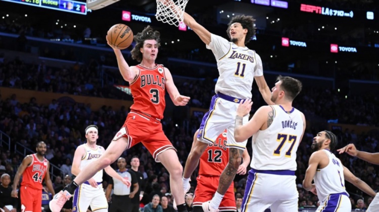 另一个助力公牛进攻的要素是湖人今天夸张的失误引发了大量反击。詹姆斯伤愈初归,感觉不佳,有些失误比较意外,东契奇也有类似的回合。除此之外,公牛的策略和执行颇为惊艳,他们收缩中路严防詹姆斯和东契奇的突破,同时非常注意截断内外连线,以及给向弱侧与底角的出球。给人的感受是,公牛对湖人的打法做了功课,展现得游刃有余。吉迪今天攻防一体,细长体型从干扰出球到协防截断球面面俱到,顺势推动快攻可谓拿手绝技。武切维奇说快不快,但任凭你七十二般变化,我自卡位不动、不犯规、不给篮板的风格,倒也让湖人无语。公牛这哥几个,今天倒有一种专业对口的既视感。