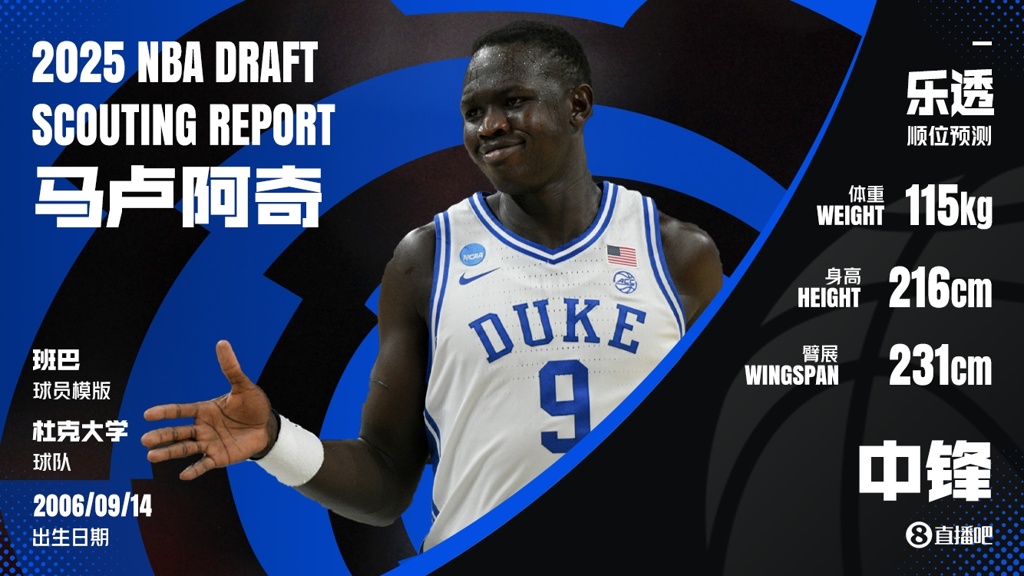 有9号签!名记:多队非常重视南苏丹中锋马卢阿奇 猛龙是其中之一